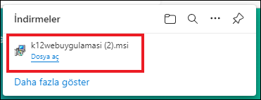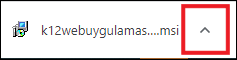 Tarayıcının sol alt köşesinde görüntülenen, k12web uygulamasının yanında bulunan yukarı yönlü ok (^) simgesine tıklamalısınız.