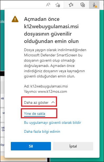 Microsoft Edge üzerinden indirme esnasında karşılaşılan güvenlik uyarıları