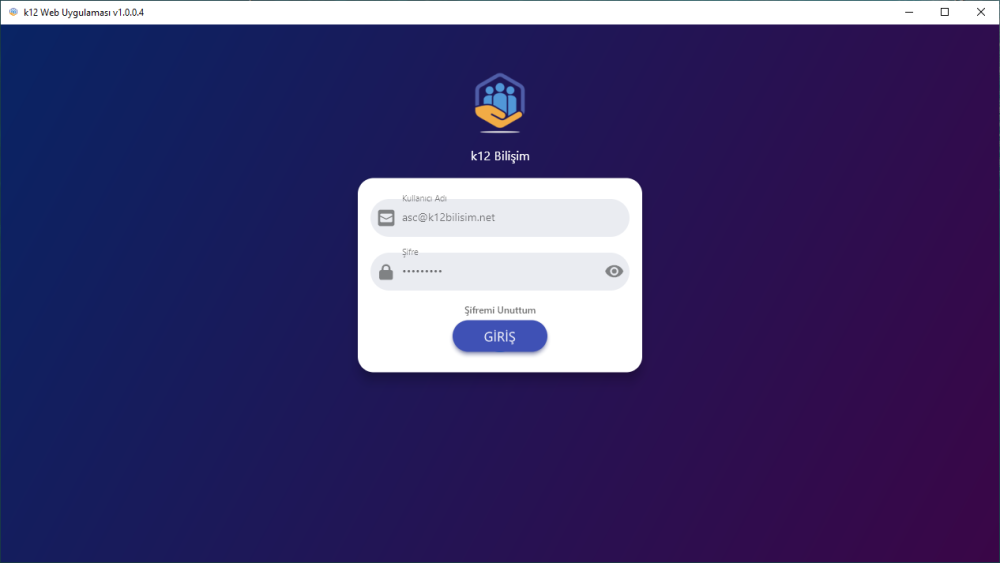 simgesi masaüstünüzde bulunmakta. Simgeye tıklayarak “k12 Web Uygulamasına” giriş yapabilirsiniz.