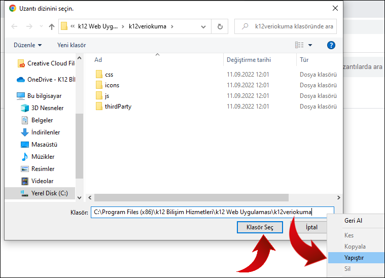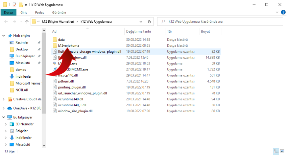 Burada bulunan “k12veriokuma” klasörüne çift tıklamalısınız.