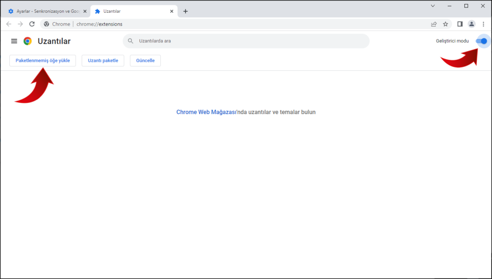 Ardından “Geliştirici Modu” seçeneğine tıklayarak, görseldeki gibi açık konuma getirmelisiniz.