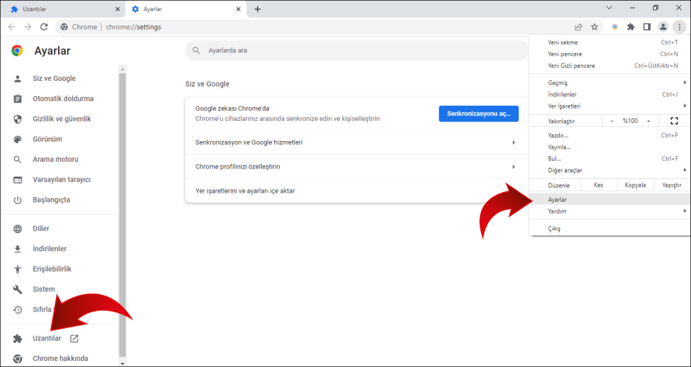 Daha sonra Google Chrome tarayıcınızı açmalısınız. Tarayıcınızın sağ üst köşesinde bulunan üç nokta simgesine tıklayarak, “Ayarlar” menüsünden “Uzantılar” seçeneğini seçmelisiniz.