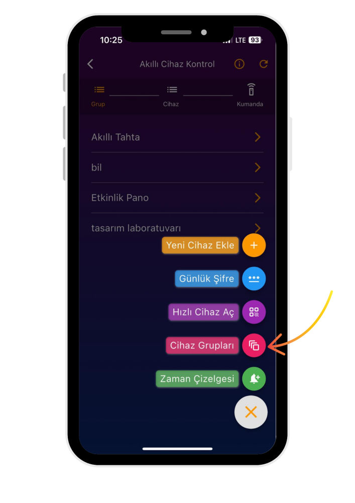 Cihaz Grupları alt modülü, akıllı cihazlarınızı belirli gruplara ayırmanıza, bu grupları eş zamanlı kontrol edebilmenize (aynı anda açıp, kilitleme vb.) mesaj gönderebilmenize, sunu veya akıllı içerik (PDF, YouTube url, Eba url) eklemenize olanak sağlar.