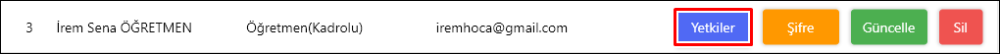 Bunun için yetkilerini ayarlamak istediğiniz öğretmenin sağ tarafındaki Yetkiler butonuna tıklayın.
