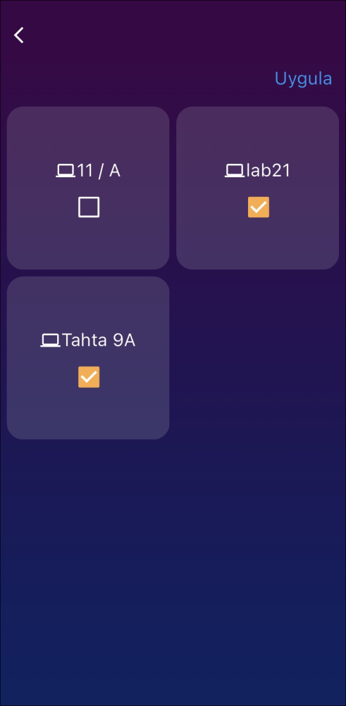Akıllı cihaz filtreleme özelliği sayesinde Akıllı Tahta Kontrol alt modülüne erişimi olan kullanıcılar sistemdeki bütün cihazlar yerine sadece kendi girdiği sınıfların veya atölyelerin akıllı cihazlarını görebilirler.