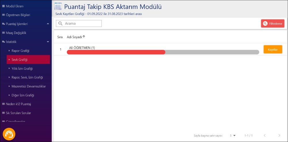 Bu sayfadan öğretmenlerin almış oldukları sevk kayıtlarını istatistiksel olarak, Kayıtlar butonu ile detaylı olarak görüntüleyebilirsiniz. Gerekli durumlarda öğretmene Yeni Kayıt Ekle butonundan yeni bir kayıt ekleyebilirsiniz.