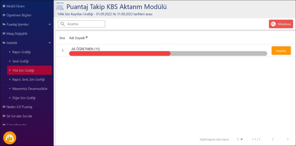 Öncelikle Kadrolu Puantaj Takip KBS Aktarım > İstatistik > Yıllık İzin grafiği sayfasını açın.