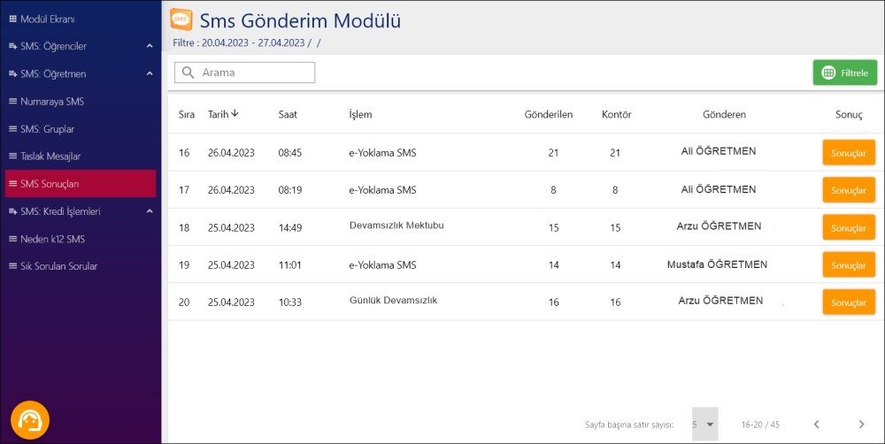 İlk olarak SMS modülü içerisinden SMS Sonuçları sayfasını açın.