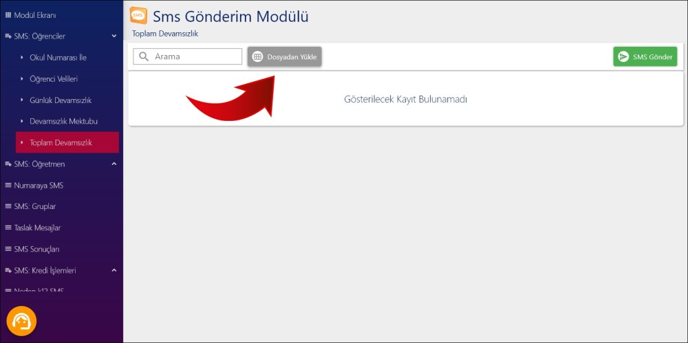 İndirmiş olduğunuz devamsızlıkları yüklemek için k12 Web Uygulamasından SMS modülünü açın.