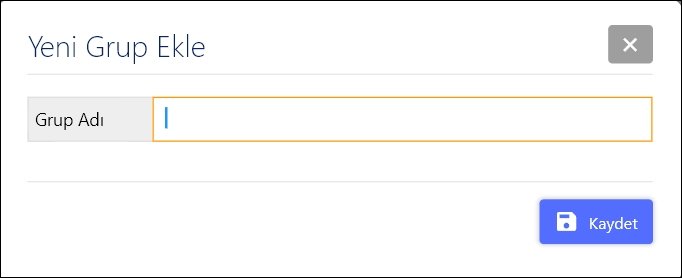 Grup oluşturmak için sağ üst taraftaki Yeni Grup Ekle butonuna basın. Önünüze açılan pencereden oluşturmak istediğiniz grubun adını girin.