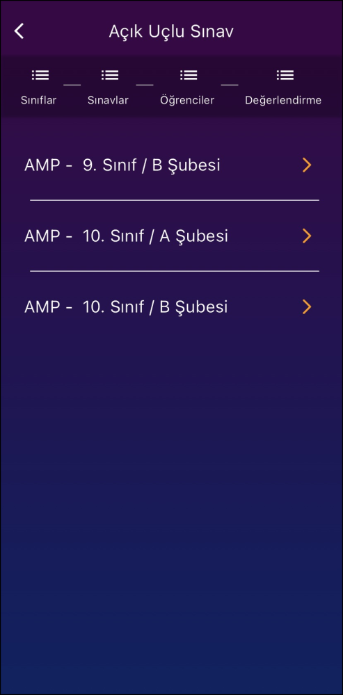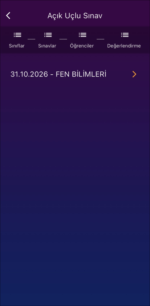 k12Mobile telefon uygulamasında bulunan Açık Uçlu Sınav alt modülü sayesinde sınavlarda öğrenci puanlarını kayıt edebilir, soru bazında başarı analizleri gerçekleştirebilirsiniz.