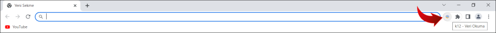 Öncelikle k12 – Veri Okuma uzantısını çalıştırabilmek için okul yönetim sisteminize giriş yapmalısınız. Okul yönetim sayfanızın ana ekranındayken tarayıcınıza yüklemiş olduğumuz k12 – Veri Okuma uzantısını açın.
