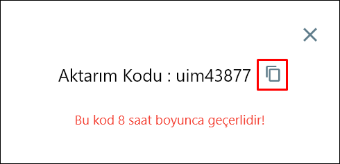 Bu buton k12 – Veri Okuma uzantısının sizden talep etmiş olduğu Erişim Kodunu oluşturacak. Oluşturulan kodu işaretli bölümden kopyalamalısınız.