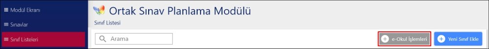 Erişim kodunu oluşturmak için k12 Web Uygulamanızdan Test/Sınav Planlama Ve Analiz Uygulaması modülüne girmelisiniz. Sınıf Listeleri sayfasından Okul İşlemleri butonuna tıklamalısınız