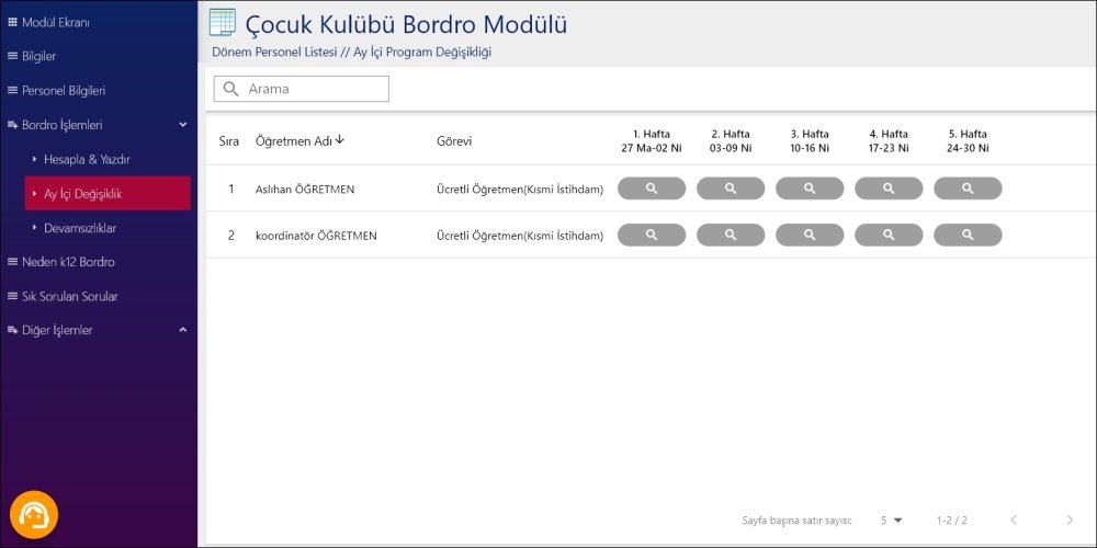 Bu başlık altında Çocuk Kulübü Bordro Uygulaması için öğretmenlerinizin ay içerisindeki programda değişiklik yapabileceğinizden bahsediliyor.