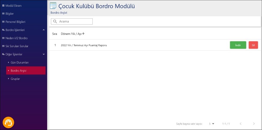Öncelikle Çocuk Kulübü Bordro Uygulaması > Diğer İşlemler > Bordro Arşivi sayfasını açın.